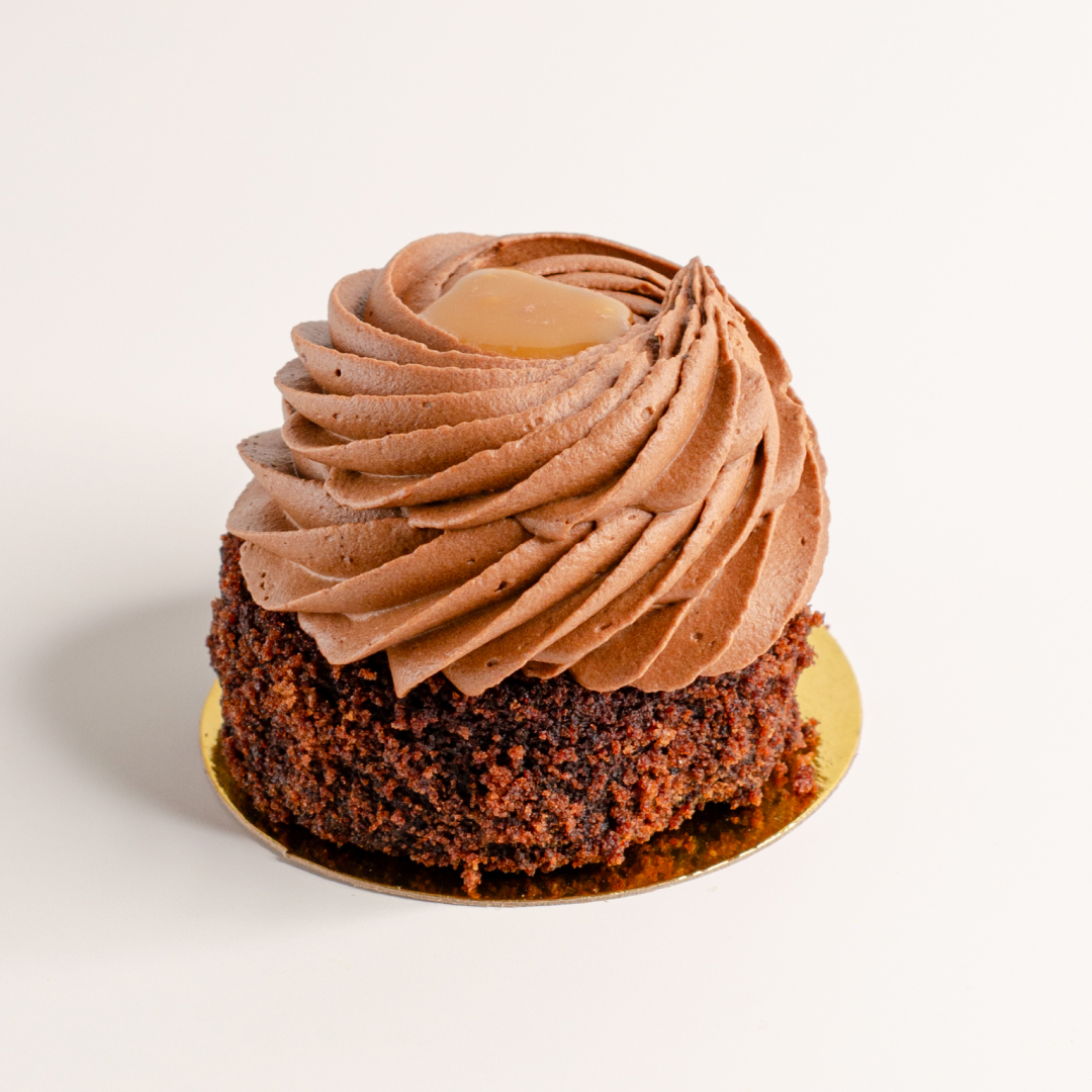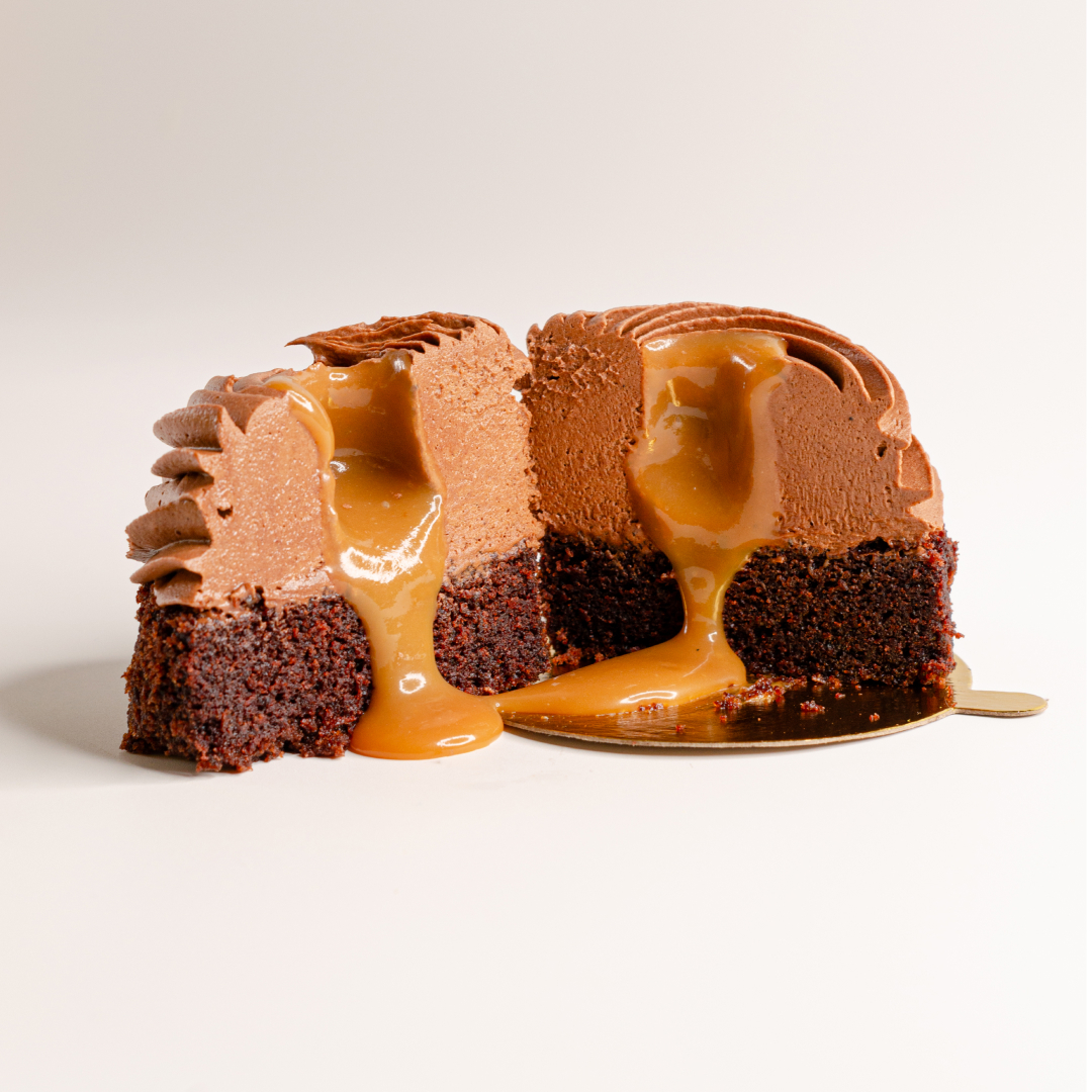 Влажный шоколадный бисквит, шоколадный крем, мягкая карамель